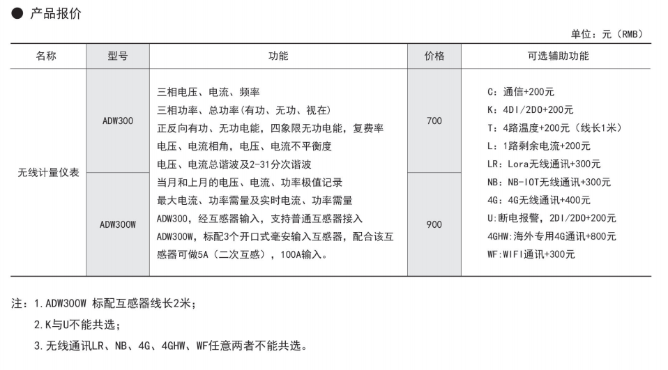 ADW300无线计量仪表主要用于计量低压网络的三相有功电能,具有RS485通讯和470MHz无线通讯功能,方便用户进行用电监测、集抄和管理。可灵活安装于配电箱内,实现对不同区域和不同负荷的分项电能计量,统计和分析。