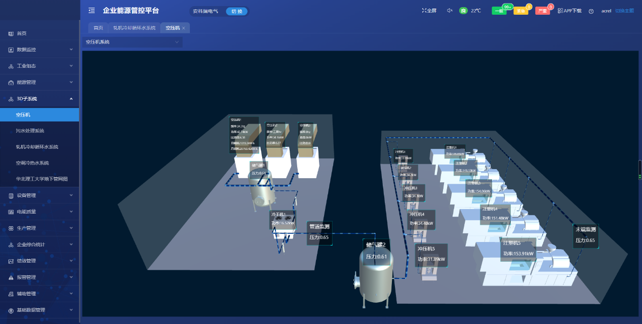 ① 搭建厂区能源管理系统的基本框架,对各个用能环节进行实时监测;