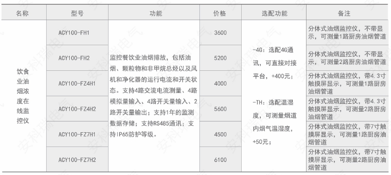 ACY100型饮食业油烟浓度在线监控仪是针对饮食业厨房油烟排放场合而设计的,由油烟探头、传感器、控制板和显示屏等部分组成,用于监控油烟、颗粒物和非甲烷总烃等污染物的排放状况和过程参数,以及风机和净化器的电流和开关状态等,并可通 过RS232/485或4G等方式进行数据传输的设备。监控仪支持最多两路油烟排放烟道的污染物测量。