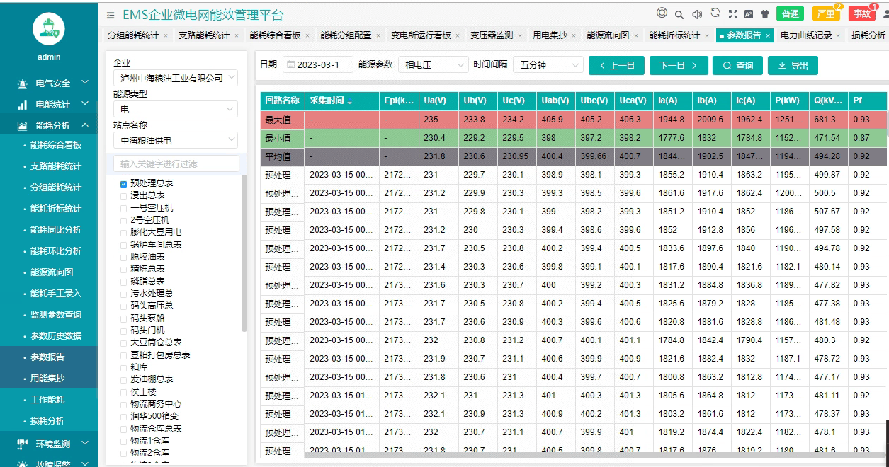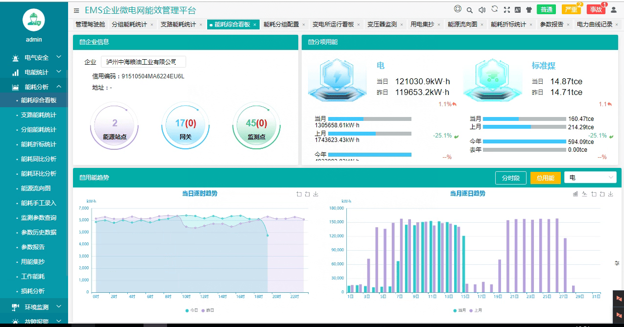泸州中海粮油能耗监测系统改造项目EMS系统能够分析建筑物内部的用电、用水、用气等数据,帮助用户发现并降低使用能源的浪费,进而减少能源耗费,节约能耗成本。