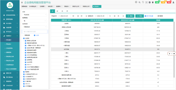 平台具备定时抄表汇总统计功能,用户可以自由查询平台正常运行以来任意时间段内各配电节点的用电情况。