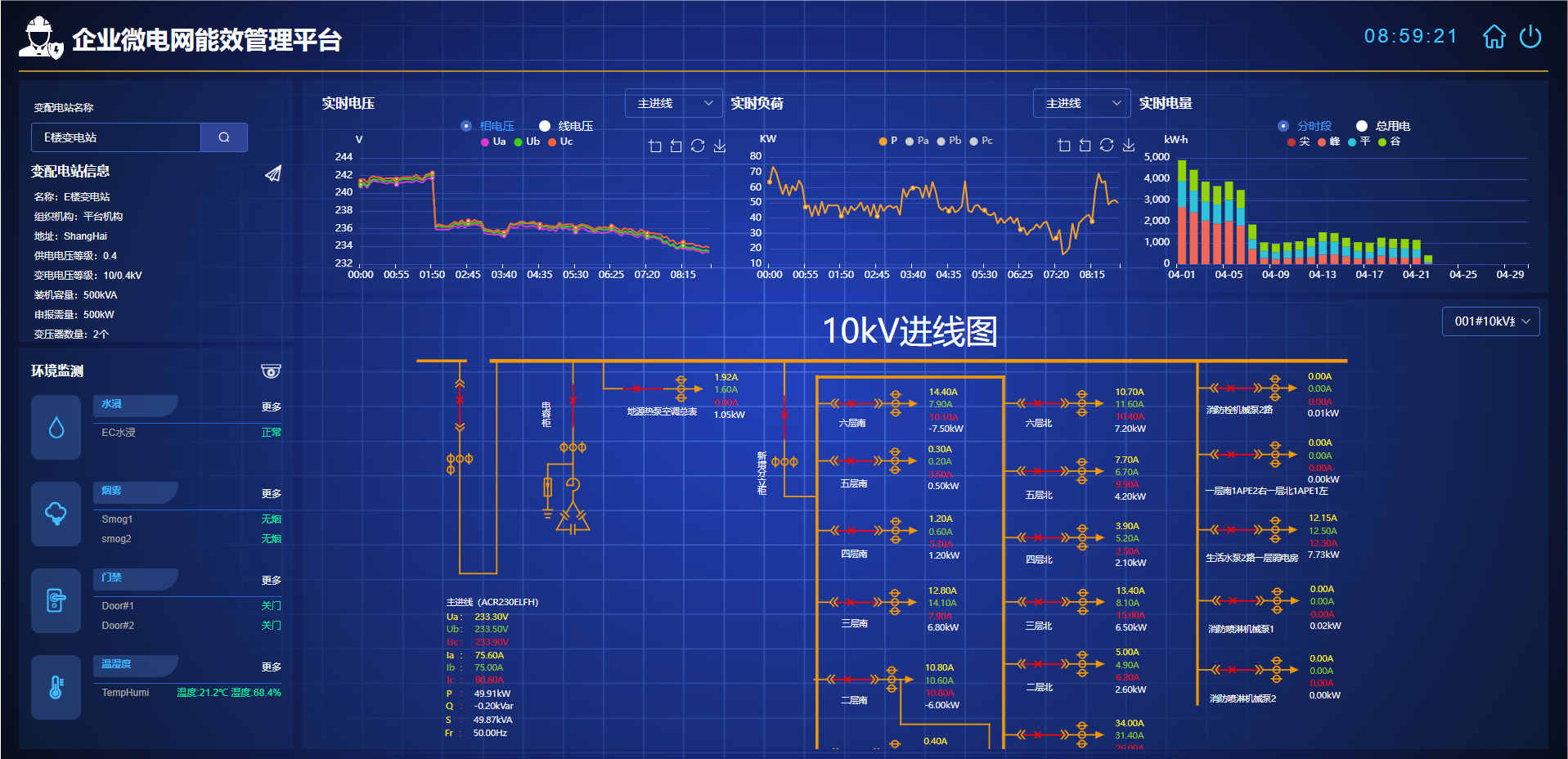 平台可实时监测变电所内变压器、各配电回路的运行情况,并记录各电力参数的历史数据。